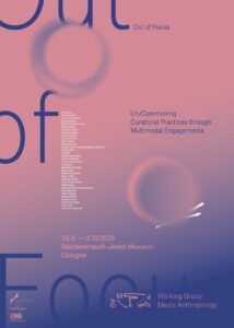 As part of the GASCA-Conference 2025 in Cologne, the Working Group Media(anthropology) curated the exhibition ›Out of Focus‹ for selected intervention spaces in and with the Rautenstrauch-Joest Museum. From Tuesday, September 30th to Thursday, Oct 2nd, 22 selected works are on display at various locations in the museum. On Wednesday, Oct 1st, 2025, there will be an exhibition reception and a performance along with the conference party.